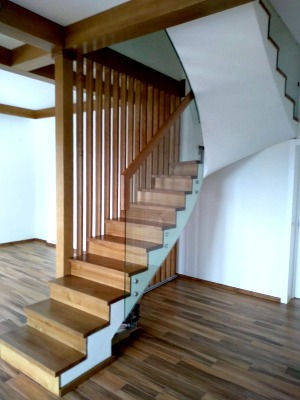 Робота. Логістика, виготовлення складників, монтаж дерев’яних сходів на бетонний каркас